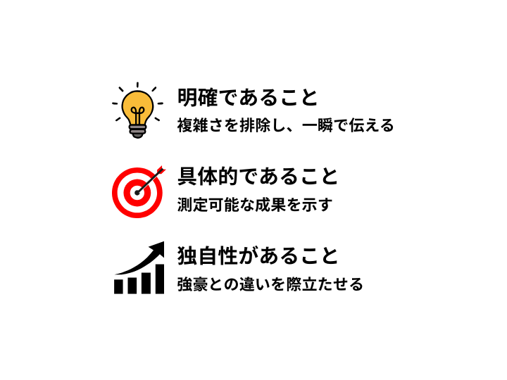 単なる機能説明ではなく、以下を一体として伝える必要があります。